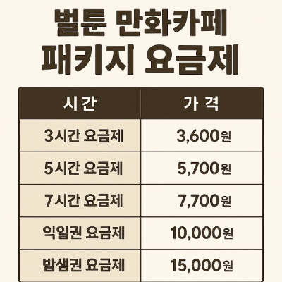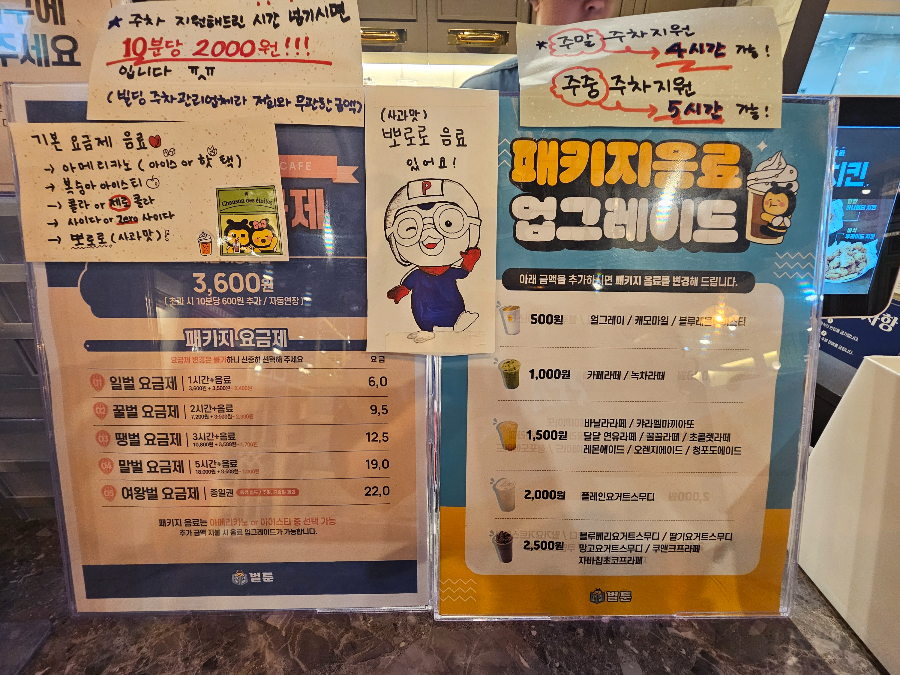 패키지 요금제가 있어요. 저희는 3시간짜리 땡벌 요금제에 1시간 더 있어서 총 4시간을 있었습니다.