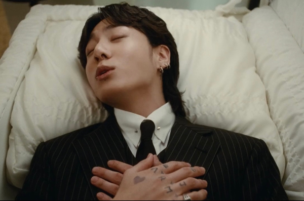 기차에 매달려서 창문 넘어로 한소희를 바라보는 정국이를 보며,
