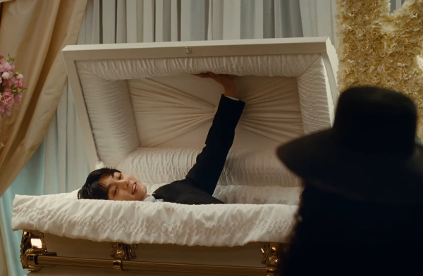관 뚜껑 열더니 여자를 바라보며 노래부르는데....
